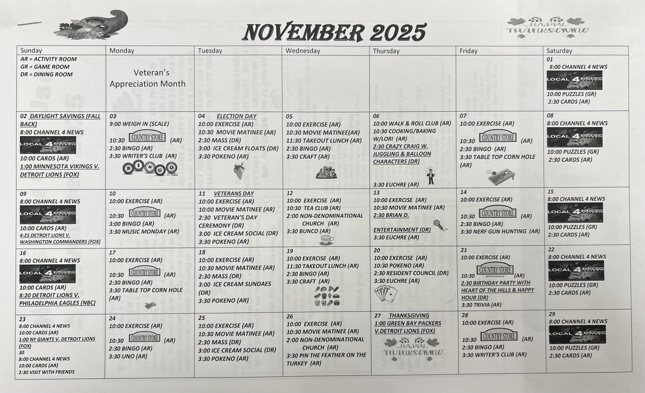 There is always something fun and interesting to do at The Arbor Inn. Join our full-time Lifestyle Director for events. The Arbor Inn has a comfortable entertainment room with a large screen TV; a full service beauty and barber shop; a game room with a pool table and card tables; an activity room with a kitchen, and a library which includes a wide variety of large print books. The Arbor Inn is beautifully landscaped with three interior courtyards, barbecue grills, and picnic tables for relaxation, cookouts, and recreation. A full-time Lifestyle Director is on staff, along with a full-service beauty salon, a well-stocked library with computer access, and a Chapel day room that doubles as our movie screening room.